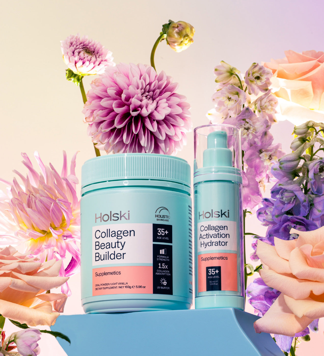 The more we learnt about the power of collagen, signalling peptides, antioxidants and vitamins, the more we realised that this wasn’t something we could cook up in the kitchen sink. So we went to New Zealand’s top skincare cosmetic chemist and herbalist, among many other experts, to help create Holski. And hopefully, start a bit of a skincare revolution for busy people like you.